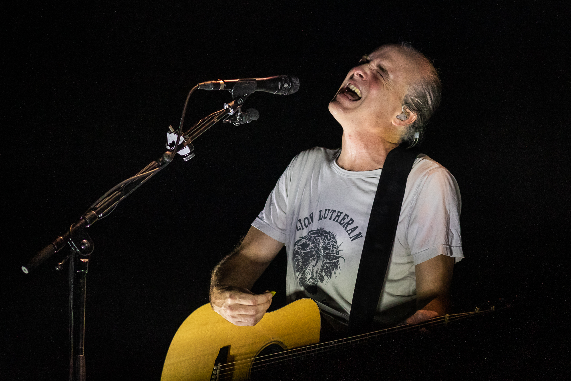 “Stay hydrated; we’ve got a lot of hits to get through” Smith quips, semi tongue-in-cheek, before launching into The National Health, during which the audience are surprisingly well-behaved. This one used to be quite a rager. It’s not much longer though before pints are flying and Smith is leaping, scissoring the air, illuminated in deep red and blinding white; the tones of A Certain Trigger. A thickset man is propped up on shoulders during Karaoke Plays and the atmosphere is becoming intensely sentimental.