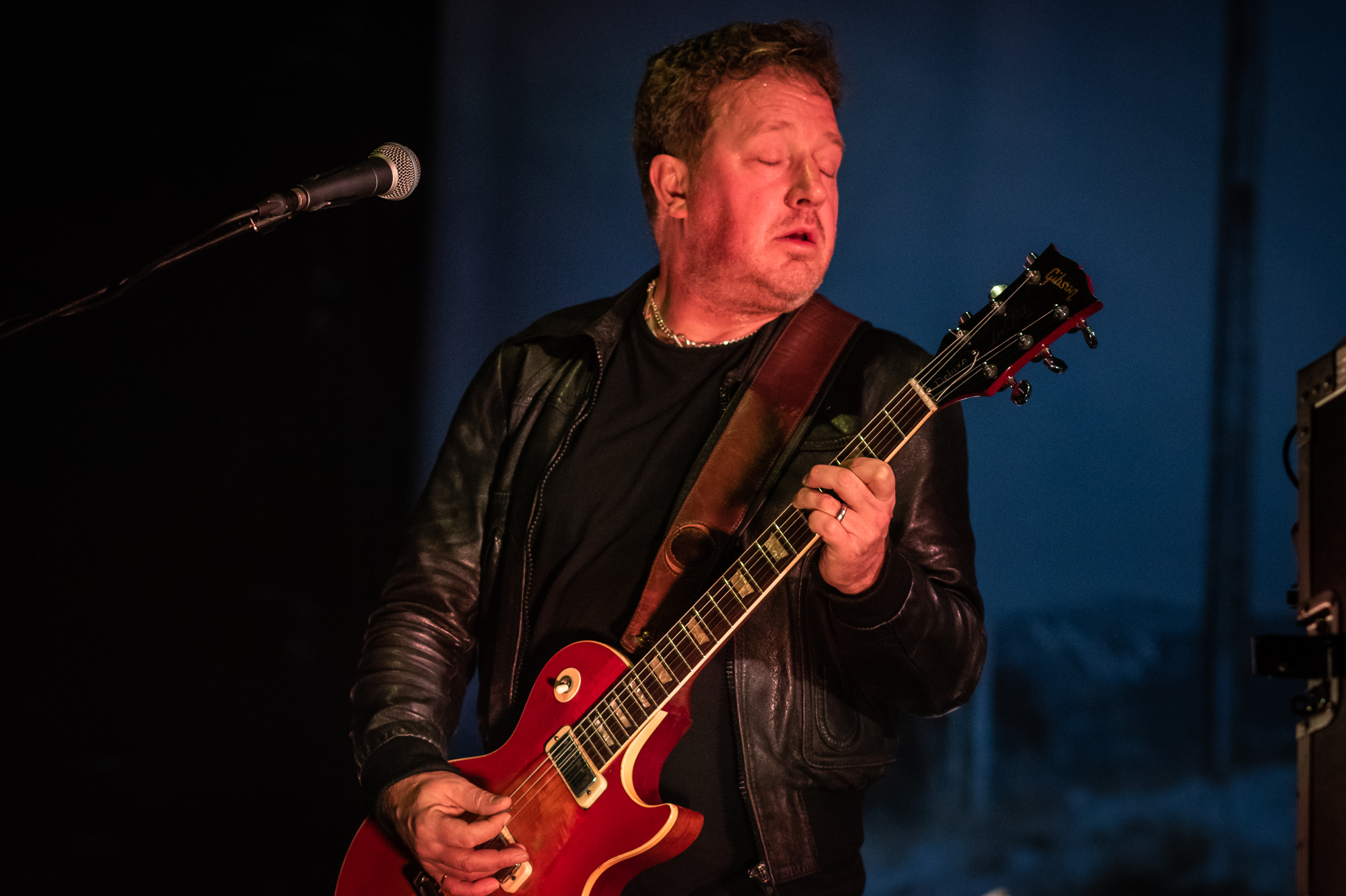 Following a career highlight tenth show at the Barrowlands in Glasgow the night before Idlewild seem astonishingly relaxed when they take to the Music Hall stage. Their energy and resolve is not diminished any by the previous night’s antics however and they set straight to task bringing Interview Music alive for their assembled followers. Dream Variations introduces the new album straight away with equal measures of everything this band is about in 2019; a rock-solid rhythm section, duelling guitars and piano, soaring harmonies and, of course, Roddy Woomble’s abstract lyricism. A curious feature on the new album that comes into play further as the set progresses is the mid-song change-up; a different tempo, a different energy, new melodic ideas break through. The title track takes one of these moments to catch its breath before launching an all out sonic assault. It’s not out of place, more a reminder that the band still love to jam, still love to throw everything into their performance.