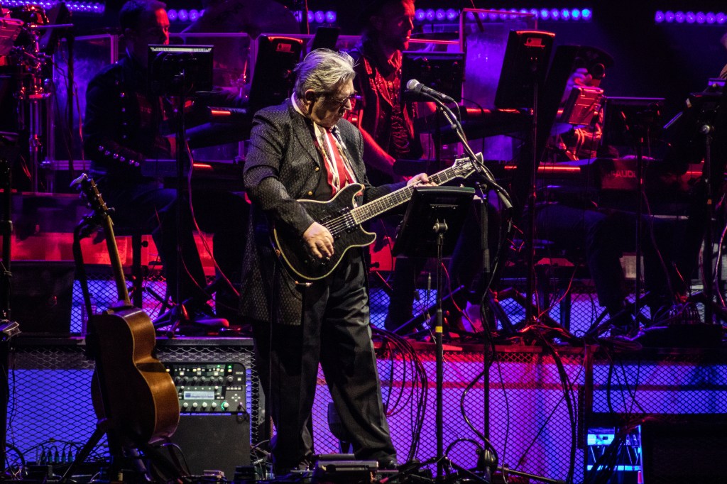Despite adhering mostly to the acoustic guitar throughout, Crow’s knack for creating rock anthems is indisputable and well supported by her six-piece band that includes two lead guitarists of equal genius in Audley Freed and Peter Stroud; the latter garnering extra attention from the singer for his “snazzy jacket” in addition to his expertise with the six-string. The sound is further embellished with Joshua Grange on pedal steel, Jen Gunderman on piano and Robert Kearns providing bass and particularly stand out vocals as a substitute for Joe Walsh on new duet “Still The Good Old Days”, a song that Crow admits is “about being my age”. Yet the clarity and ease of her voice on the opening of “The Difficult Kind” shows an ageless strength and beauty; her voice is as good as it’s ever been. Sadly, there are times when the full force of the band is too much and Crow’s still-powerful vocal is overwhelmed, mainly by the treble of her own guitar. It’s disappointing to experience this in a room like the Concert Hall which usually delivers perfectly balanced levels, for any genre or musical style. Nevertheless the crowd is on her side and she receives a standing ovation before she’s even finished the set. Admittedly, the performance of “Best Of Times” is well deserving; Crow takes her microphone from its stand and commands the stage from end to end with multiple charged harmonica solos, set against intense strobing as the band gathers around the drum kit to pool and play off  their collective energies.